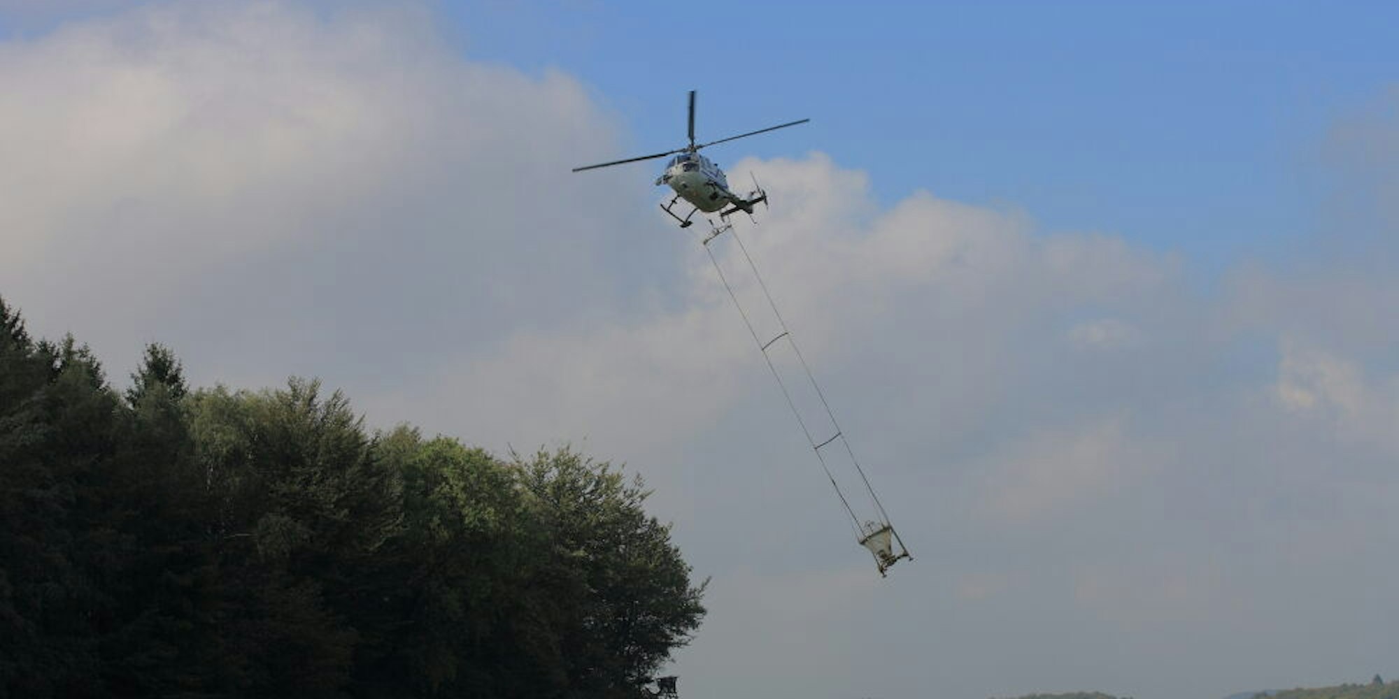 Wipperfürth – Seit dem gestrigen Freitag kreist ein Hubschrauber über den Wäldern rund um die Neye-Talsperre. Grund ist die Bodenschutzkalkung, berichtet das Stadtforstamt Remscheid, das die Wälder bewirtschaftet. Gekalkt werden die von den Technischen Betrieben Remscheid bewirtschafteten Wälder auf Wipperfürther Stadtgebiet und weitere Privatwälder voraussichtlich bis Anfang Oktober. Mit Hilfe des Hubschraubers werden insgesamt rund 200 Hektar Waldboden gekalkt.