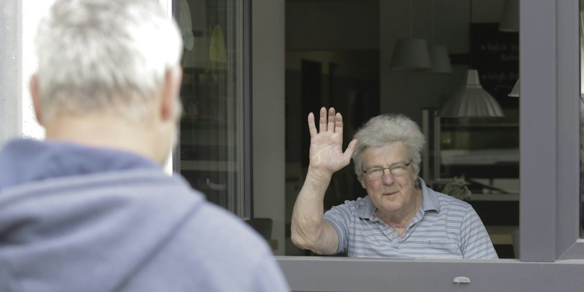 Am Fenster können die Bewohner des Inovana-Seniorenheims von Angesicht zu Angesicht mit ihren Angehörigen sprechen.