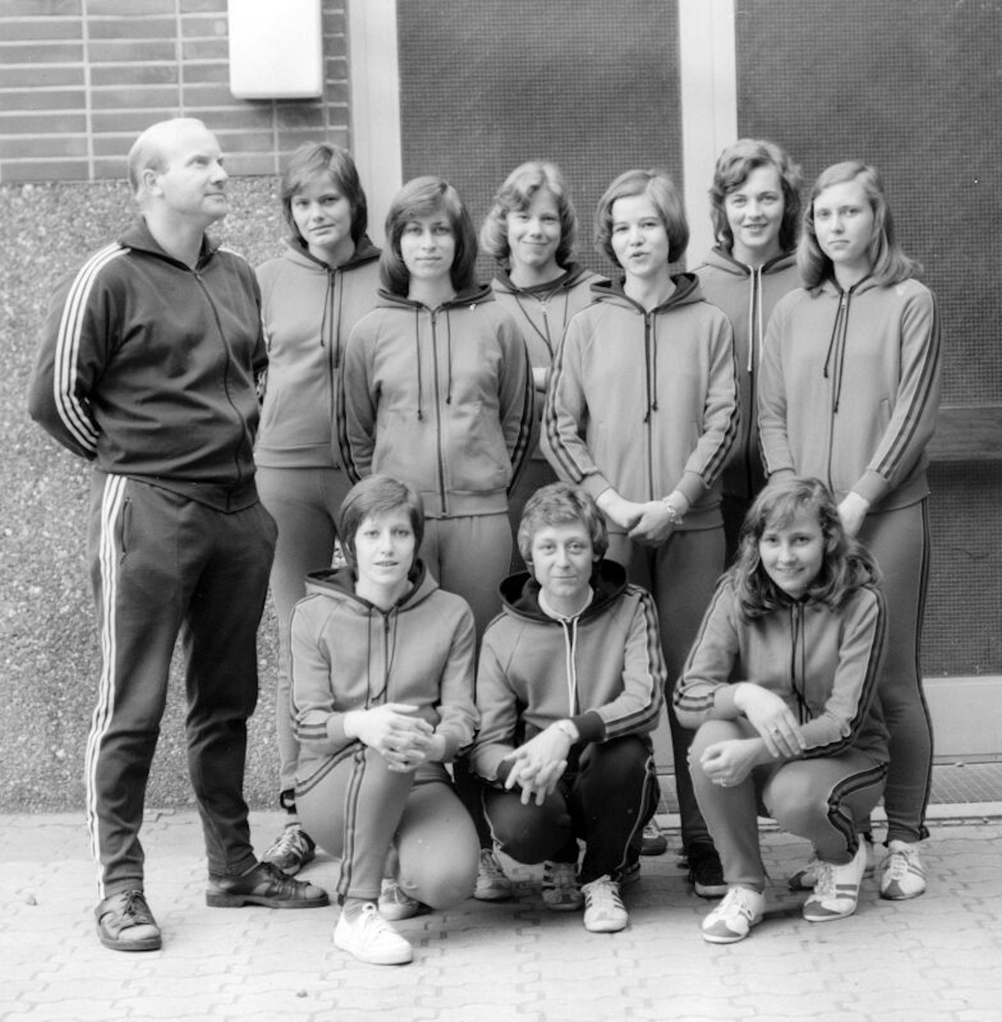 Die Spielerinnen mit Trainer Günther Büngen, viele Sportlerinnen der Anfangsjahre wurden später selbst zu Übungsleiterinnen.