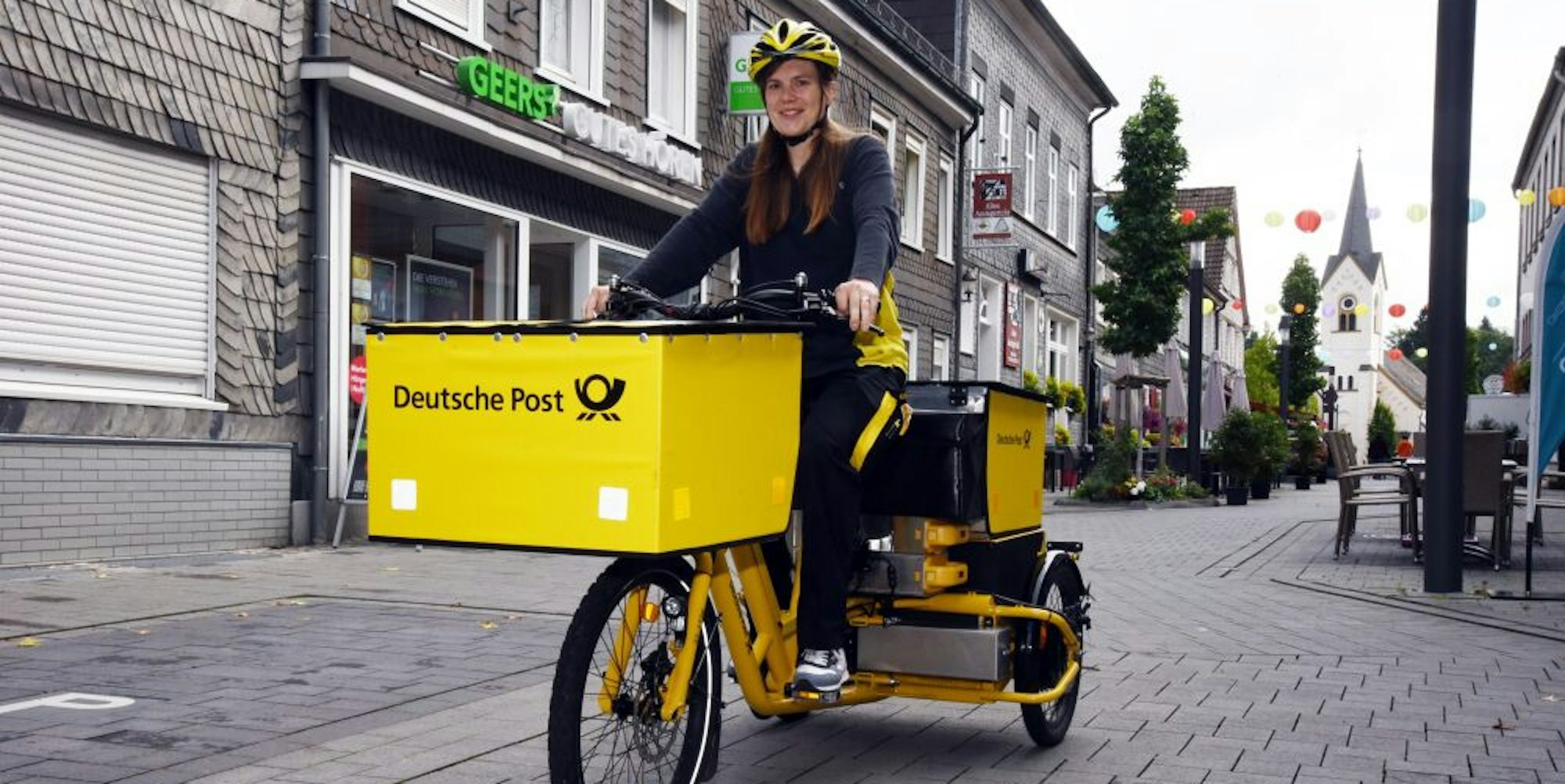 Wipperfürth – Briefe und Päckchen, die für die Innenstadt bestimmt sind, legen die letzten Meter ab sofort auf drei Reifen zurück. Seit der vergangenen Woche flitzt Zustellerin Nadine Falk mit einem E-Trike der Deutschen Post über Marktplatz, Untere, Lüdenscheider und Bahnstraße. Satte 90 Kilogramm fassen die sechs Briefbehälter vorne und am Heck, das Vehikel misst 2,40 Meter in der Länge.