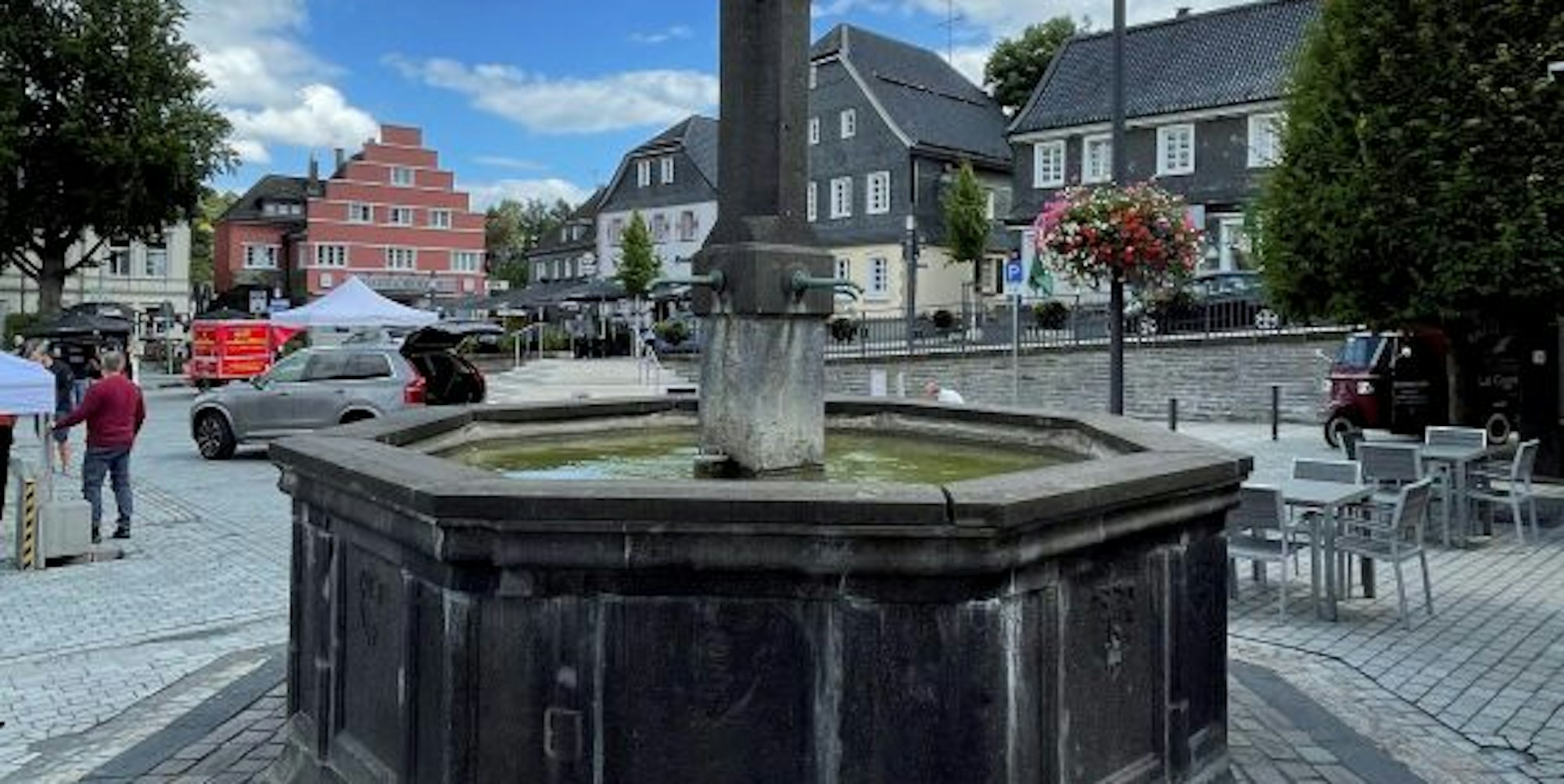 Wipperfürth – Aus den vier Rohren des Marktbrunnens tröpfelt es nur noch, der Brunnen an der Marktstraße hat gar kein Wasser und auch das Wasserspiel auf dem Hausmannsplatz ist trocken gefallen. Dabei gibt es in diesem Jahr genügend Wasser und auch die Quelle auf dem Nackenborn, aus der die Brunnen gespeist werden, sprudelt munter weiter. Das Problem liegt tiefer, ungefähr auf Höhe der Krakenburg. Dort haben Wurzeln die Leitung beschädigt, so dass kein Wasser mehr zum Brunnen fließt. Das haben Untersuchungen der Stadt ergeben. Doch bis das Wasser wieder in den Brunnen fließt, kann noch einige Zeit vergehen. Wie Sonja Puschmann von der Stadtverwaltung berichtet, muss die Leitung teilweise erneuert werden. Die Arbeiten sollen vom Bauhof vorgenommen werden. Doch der ist aktuell damit beschäftigt, die Hochwasserschäden zu beseitigen. Wann die Brunnen also wieder sprudeln, ist aktuell noch offen. (lz)