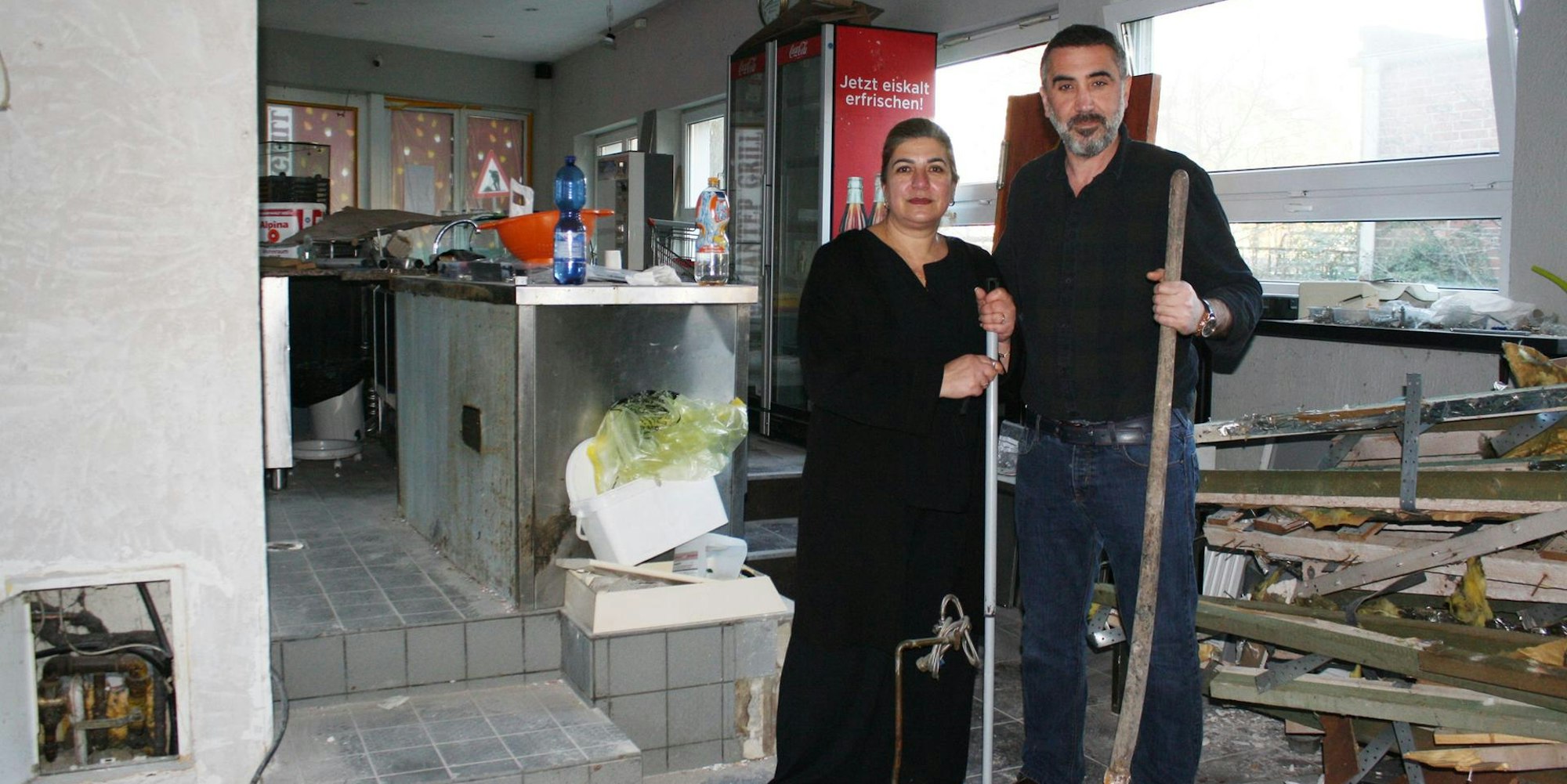 Der Gaziantep-Grill gleicht nach dem Hochwasser einer einzigen Baustelle, Hanin und Turgay Akyüz packen an.