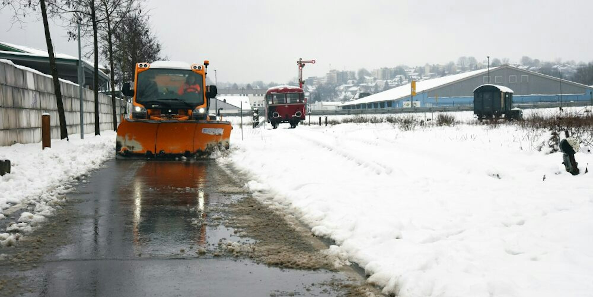 Wipperfürth – Die Bahntrasse wird ab sofort regelmäßig von Eis und Schnee befreit. Das hat Bürgermeisterin Anne Loth bei einem Treffen mit ihren Amtskollegen aus Marienheide und Hückeswagen, Stefan Meisenberg und Dietmar Persian, auf dem alten Bahngelände der Hansestadt bekanntgegeben.