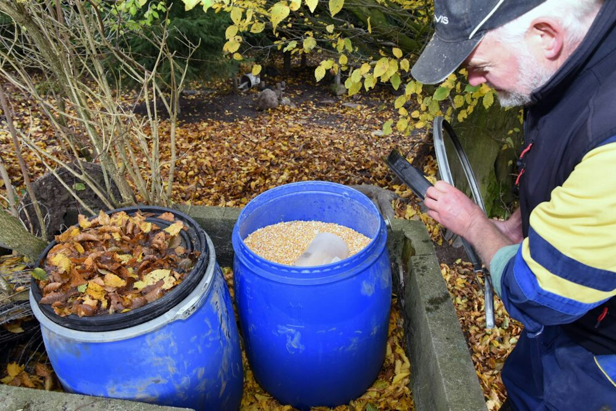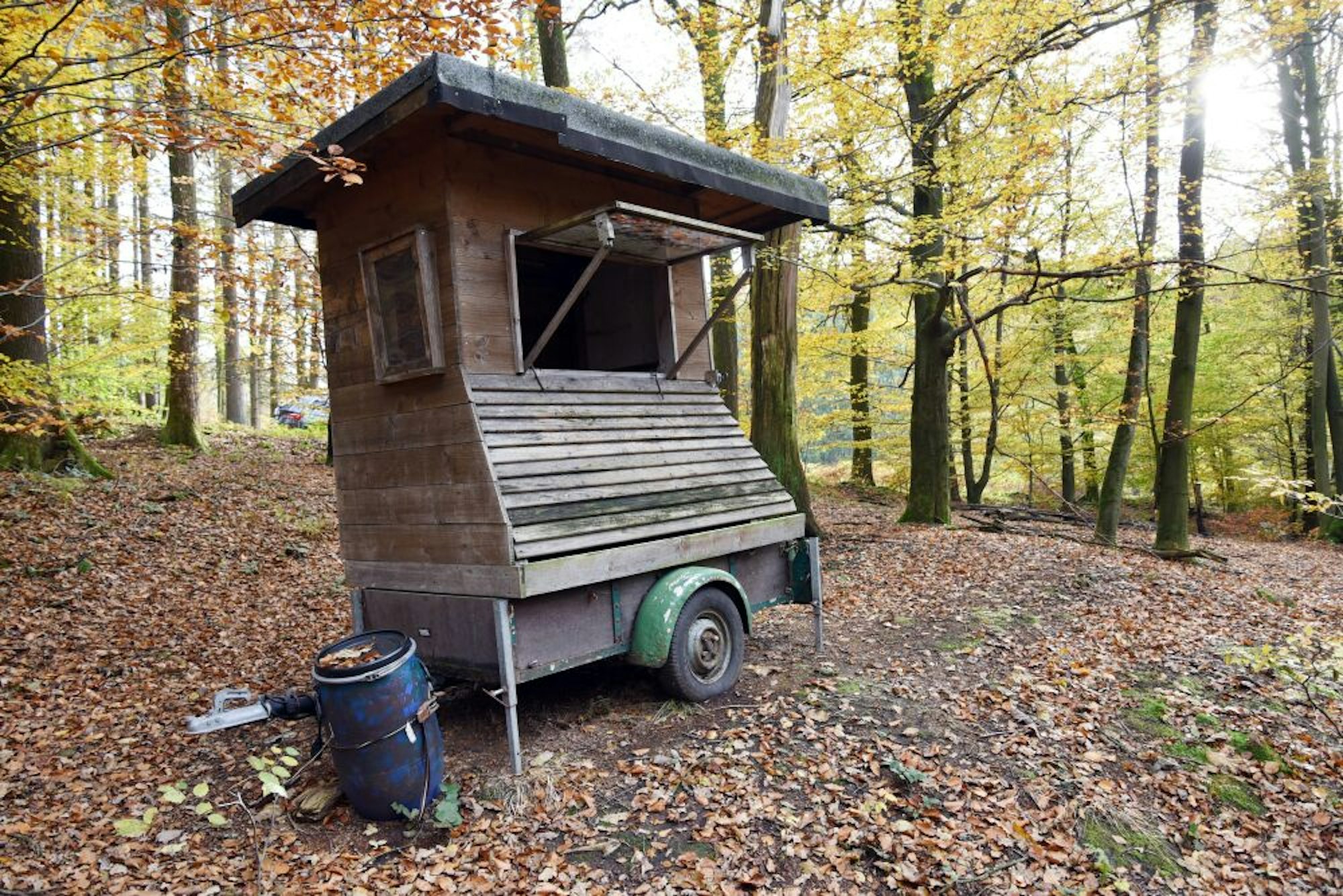 „Nahezu täglich wird neues Futter ausgestreut“, ärgert sich Theunissen. Der Mais-Nachschub lagert in blauen Tonnen, nur ein paar Schritte von der Futterstelle entfernt. Einen Steinwurf weiter wurde ein mobiler Hochsitz montiert. Dem Laien erscheint diese Entfernung ungewöhnlich gering – übertrieben ausgedrückt bekommt man das Gefühl, dass der Jäger beim Anlegen praktisch schon mitten zwischen den Schweinen sitzt. „Für mich hat das nichts mit Jagen zu tun – das ist Wildschweinmast im Wald“, betont Markus Theunissen.