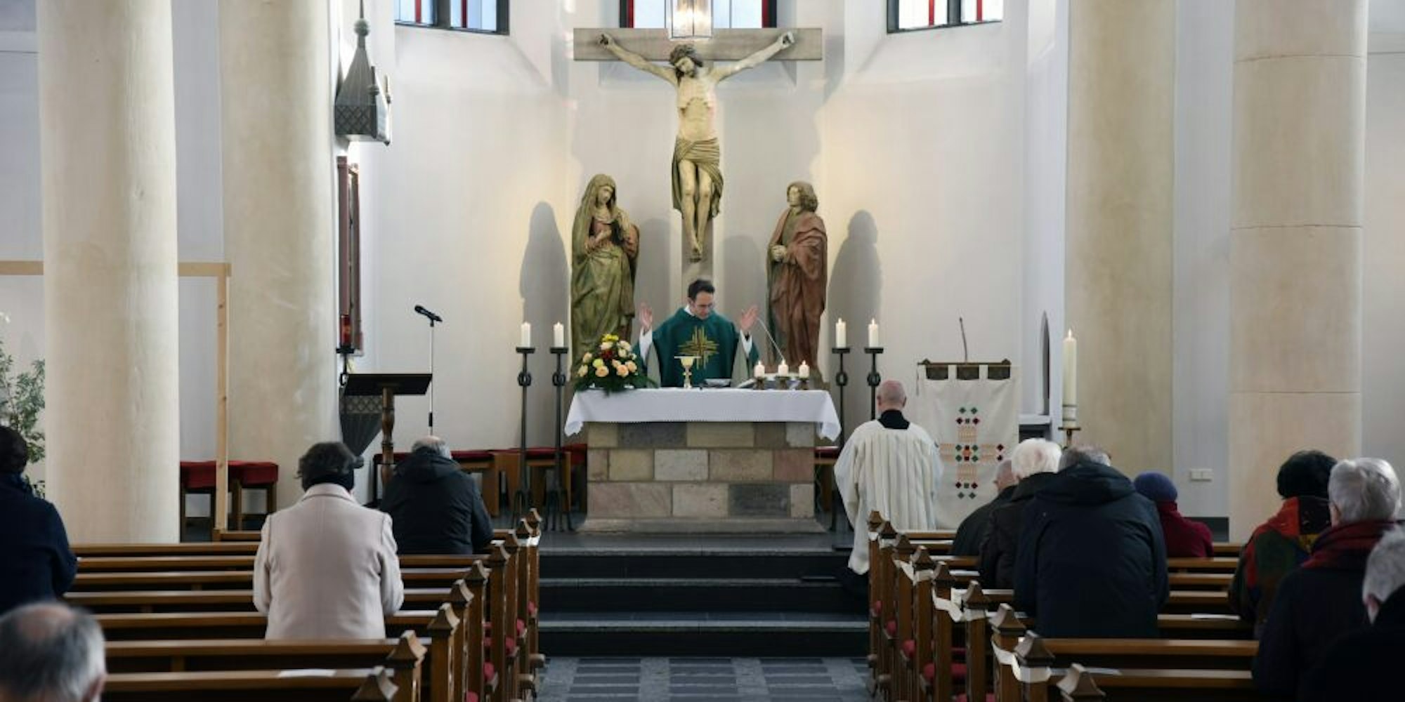 In St. Severin zelebrierte Pastor Martin Reimer den ersten Präsenzgottesdienst in diesem Jahr. Es wäre auch für mehr Gläubige noch Platz nach den Corona-Regeln gewesen.
