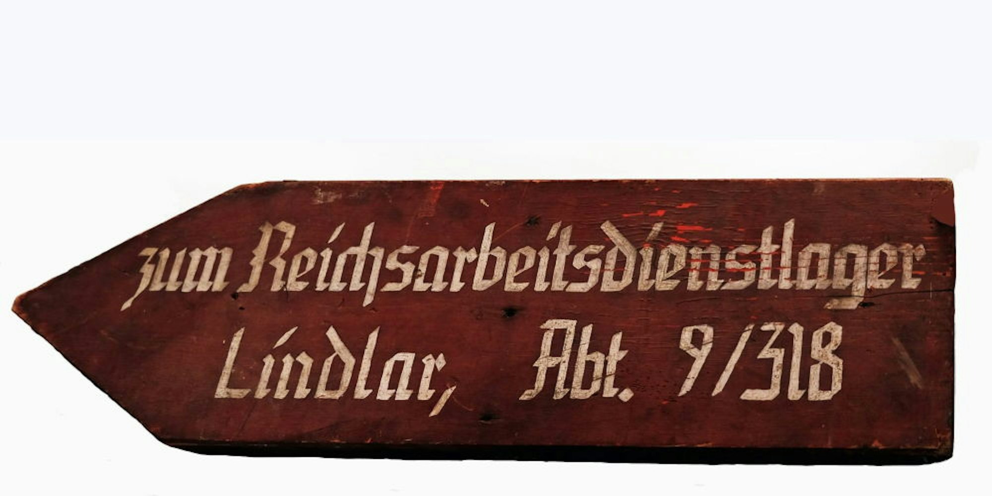Das Holzschild des Lindlarer Lagers wird im Gemeindearchiv aufbewahrt.