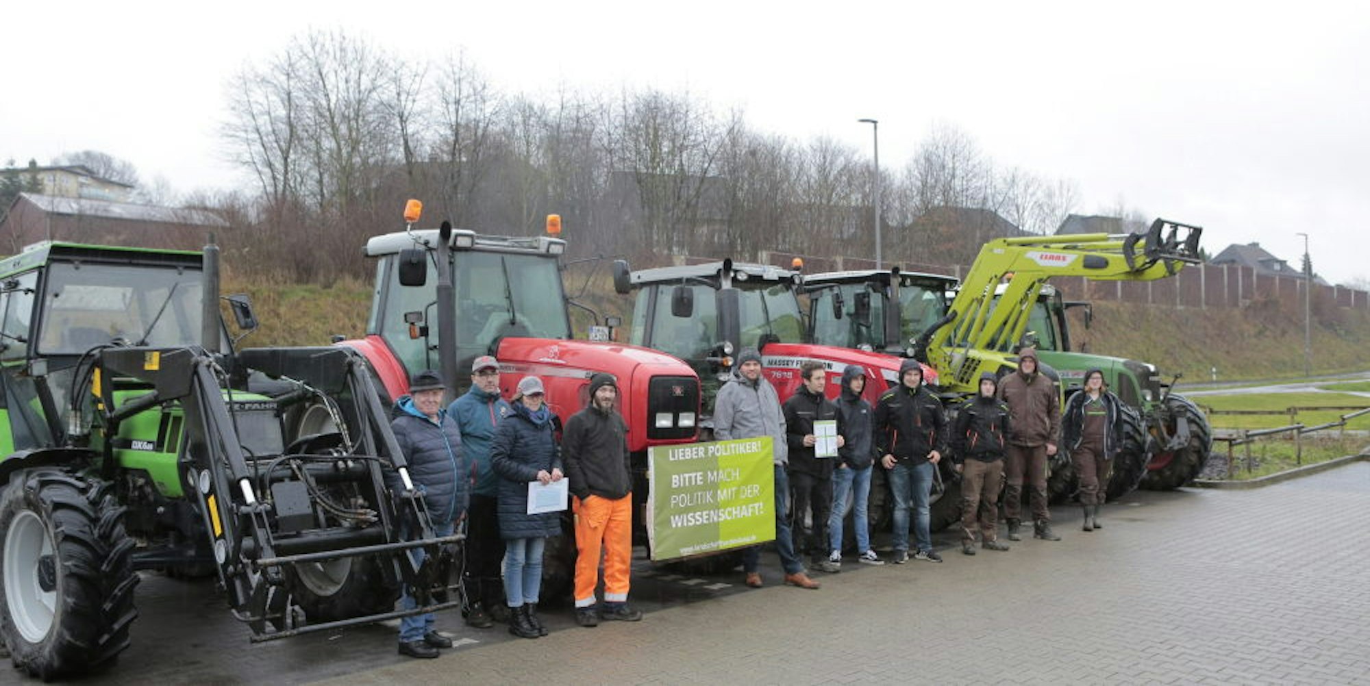 Protestaktion der Landwirte auf dem Parkplatz der Genossenshaft.