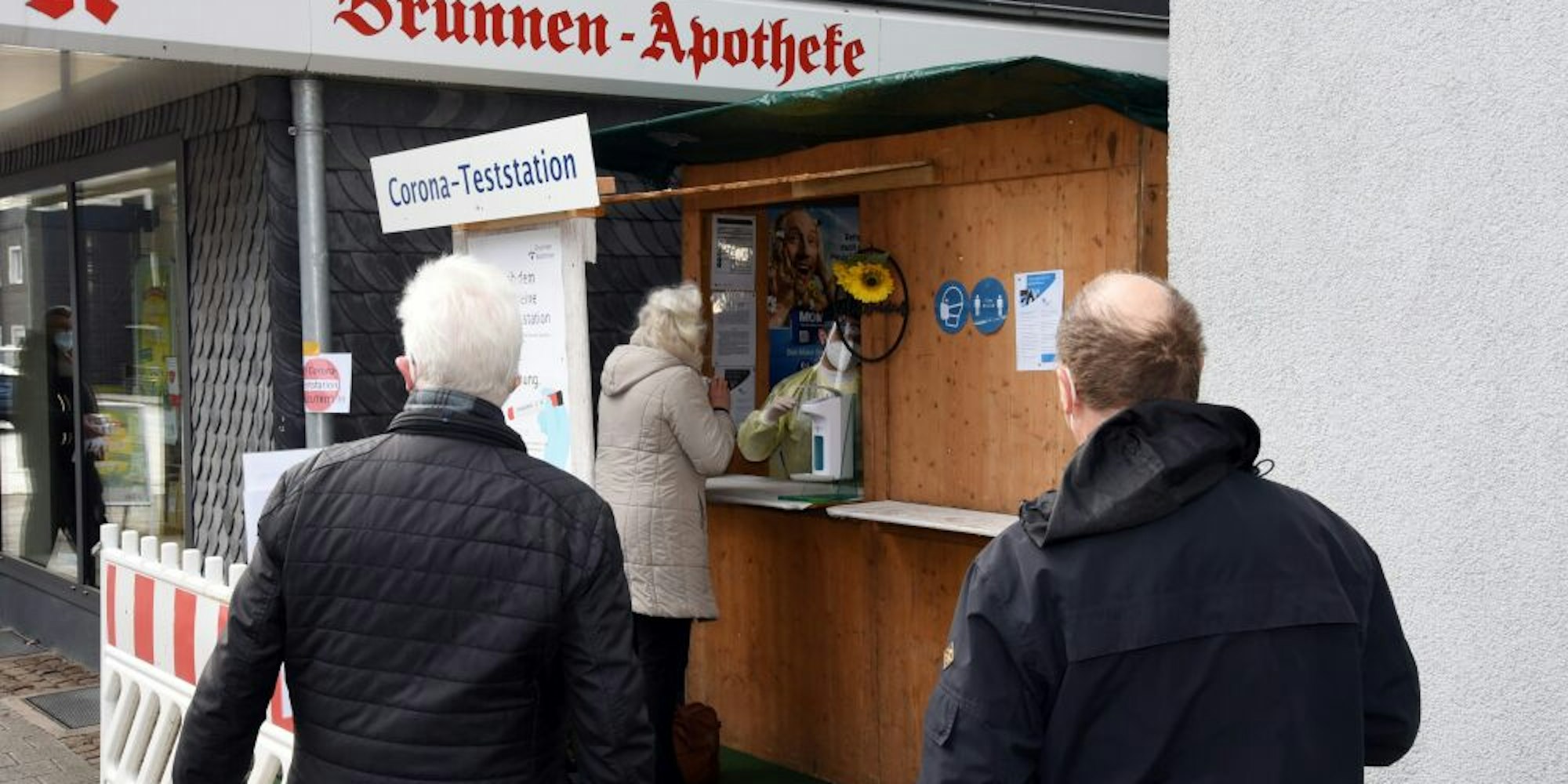 Die Corona-Teststation vor der Brunnenapotheke.