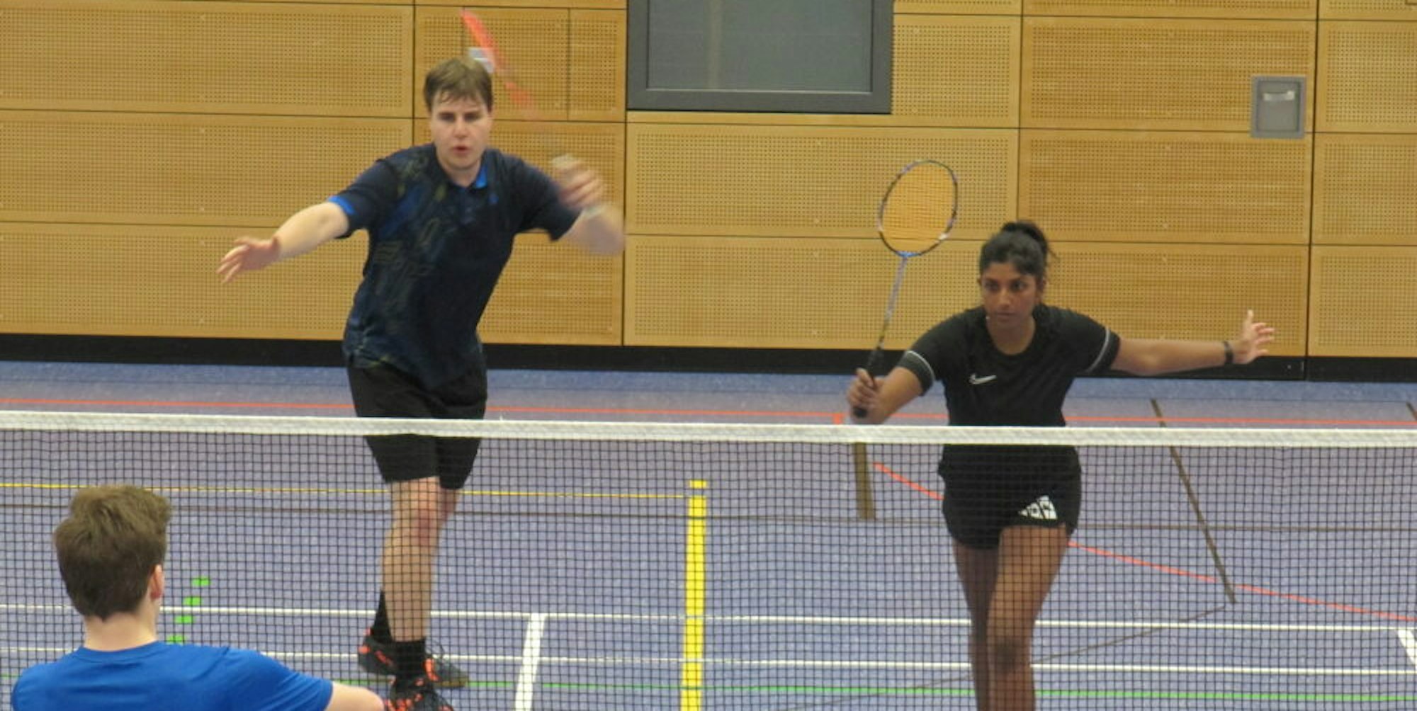 Mixed zwischen Benjamin Hardt/Hamrithaa Shanmuganathan vom VfL Marburg (oben) gegen Solveig Scharfschwert und Bjarne Trampnau, ebenfalls aus Marburg.
