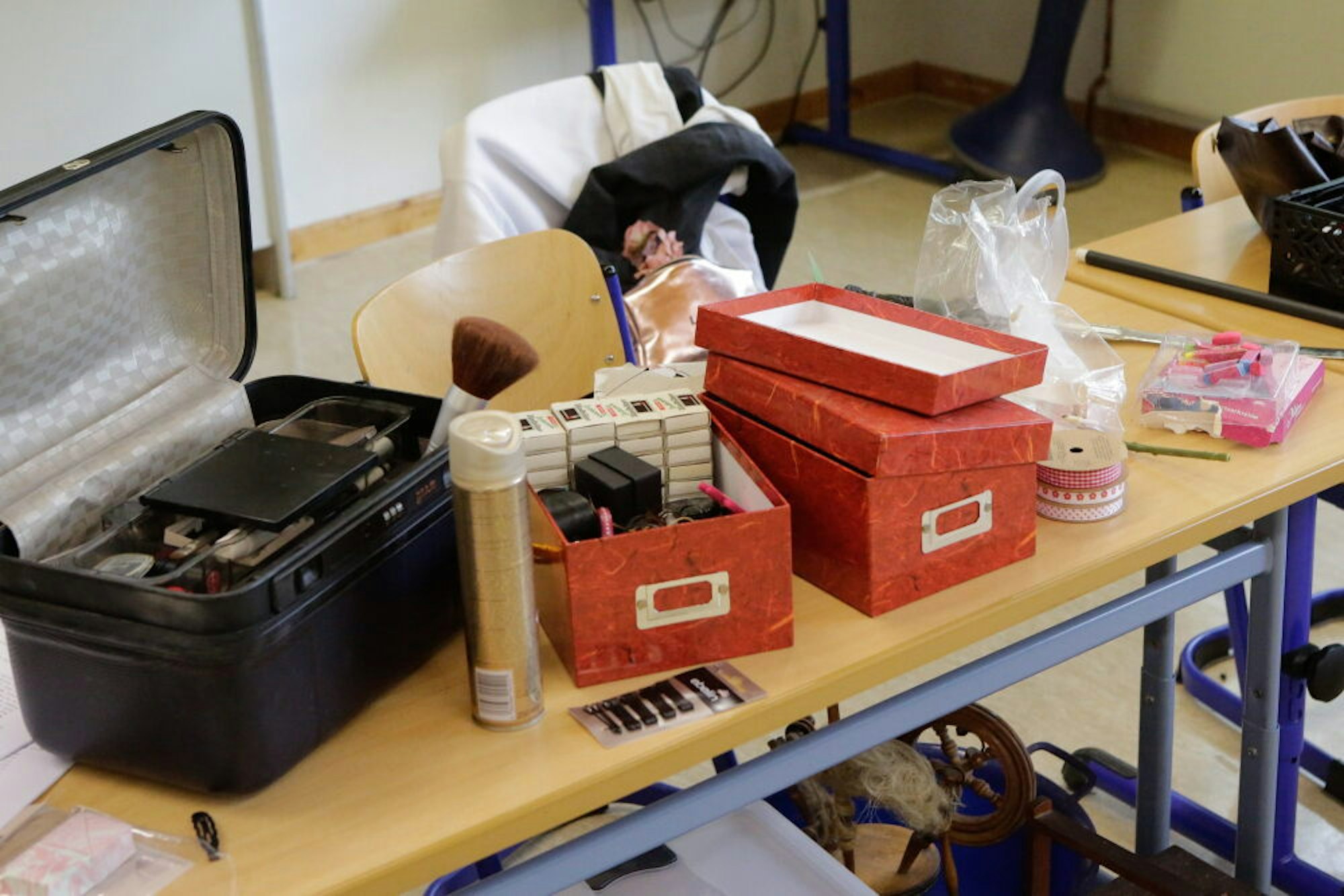 Die Schauspielerinnen werden geschminkt wie die Profis auch.