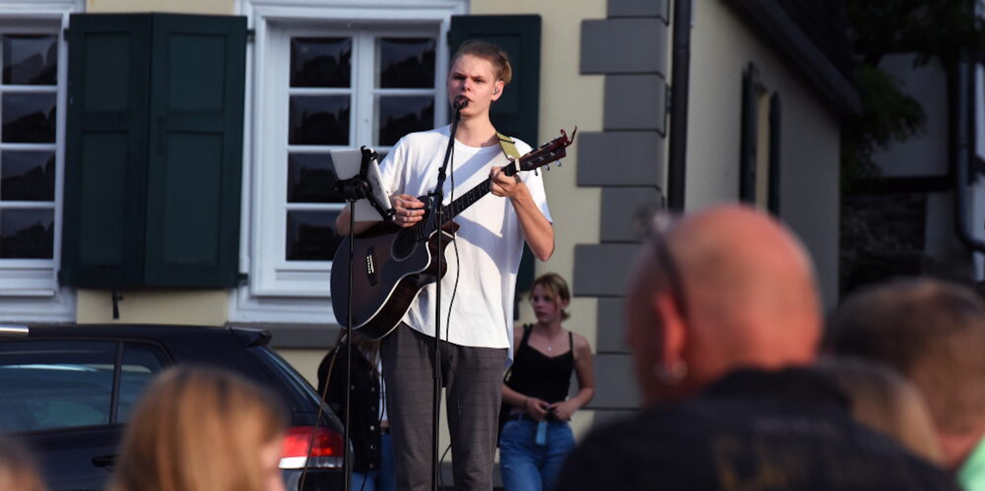 „Fast schon romantisch“ beschreibt Anja Weiler die Stimmung, für die Kurz mit Songs von Vincent Weiss, Joris, Revolverheld und Ed Sheeran sorgt. Die 54-Jährige aus Wermelskirchen besucht mit ihrem Mann das Konzert und ist begeistert von der Atmosphäre: „Man fühlt sich wirklich wie im Urlaub. Wenn ich die Augen schließe, könnte ich fast meinen, einem Straßenmusiker mitten in der Altstadt von Rom zu lauschen“. Auch die eigenen Stücke von Kurz kommen bei den Besuchern gut an. „Haus am Meer“ und „Weil sich alles dreht“ standen ebenso auf dem Pro-gramm, wie neue Songs, die der 19-Jährige noch gar nicht veröffentlicht hat.