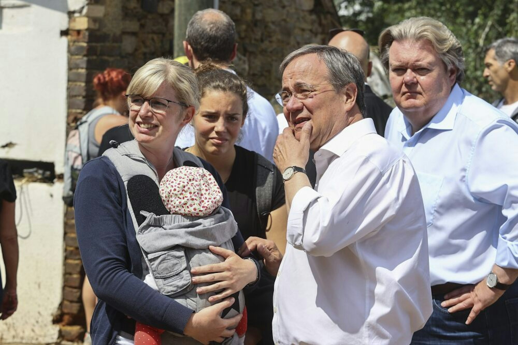 Er und Merkel versprechen Hilfen von Bund und Land für die Betroffenen. „Die Formulare und die Anträge müssen ganz simpel sein, ganz einfach sein“, sagt der CDU-Bundeschef und Kanzlerkandidat: „Und sie sollen noch in dieser Woche fertig sein, damit recht bald das Auszahlen der ersten Gelder beginnen kann.“ Er sei sehr dankbar dafür, dass das Bundeskabinett an diesem Mittwoch eine erste Soforthilfe auf den Weg bringen werde. Das Landeskabinett werde diese Summe in seiner Sitzung am Tag darauf verdoppeln.