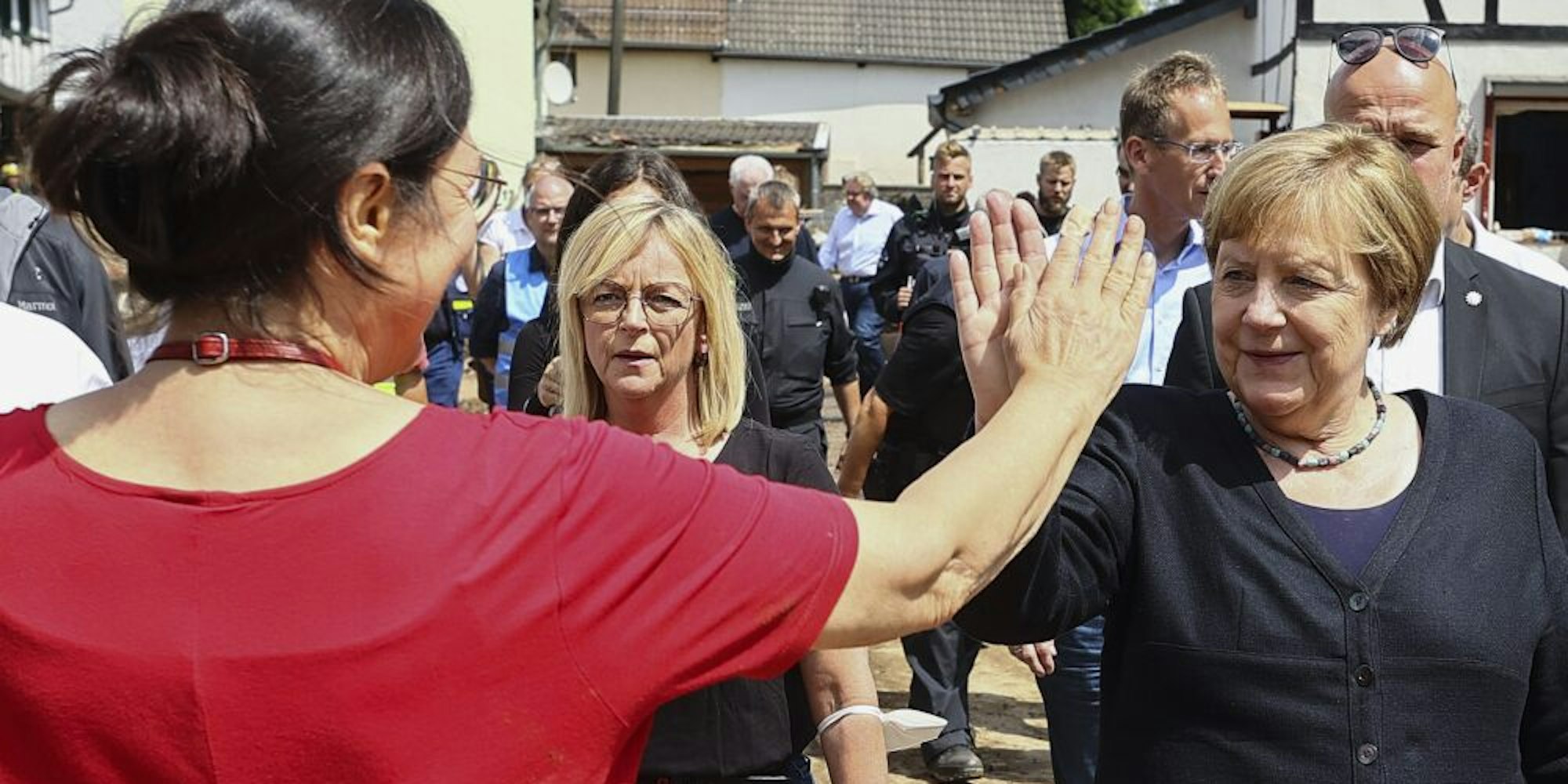 Nur ein kleiner Pressetross durfte sie dabei begleiten, die Anwohner sollten nicht allzu sehr gestört werden. Anwesende berichteten von teils rührenden Szenen. So sei aus einem Helfertrupp, der kurz Pause machte, der Ruf gekommen sei: „Frau Bundeskanzlerin, wir haben noch ein paar Handschuhe für Sie.“ Die Kanzlerin habe das mit einem aufmunternden Lächeln quittiert, berichteten Teilnehmer. Ein kurzer Augenblick in einer traurigen Zeit.