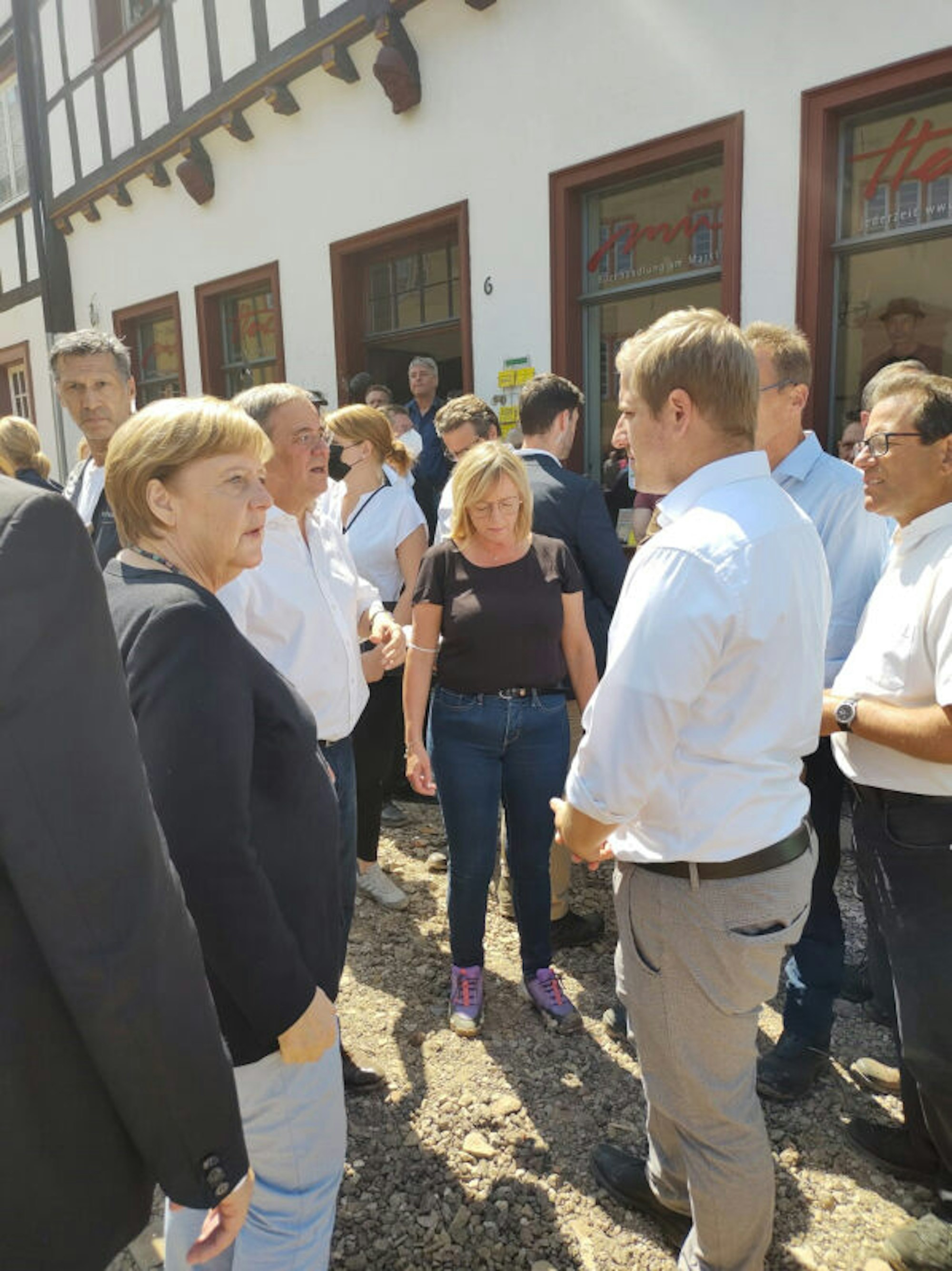 Andere empfanden den Besuch eher als störend, wollten das aber nicht mit ihrem Namen in der Zeitung lesen. Durch den Besuch, so der CDU-Bundestagsabgeordnete Detlef Seif, werde die Hilfe für Merkel und Laschet „zu einer Herzenssache“. Das sei gerade an den Tagen vor den entscheidenden Kabinettssitzungen in Berlin und Düsseldorf wichtig. Beide könnten ihren Ministern nun von ihren Erlebnissen sehr authentisch berichten.