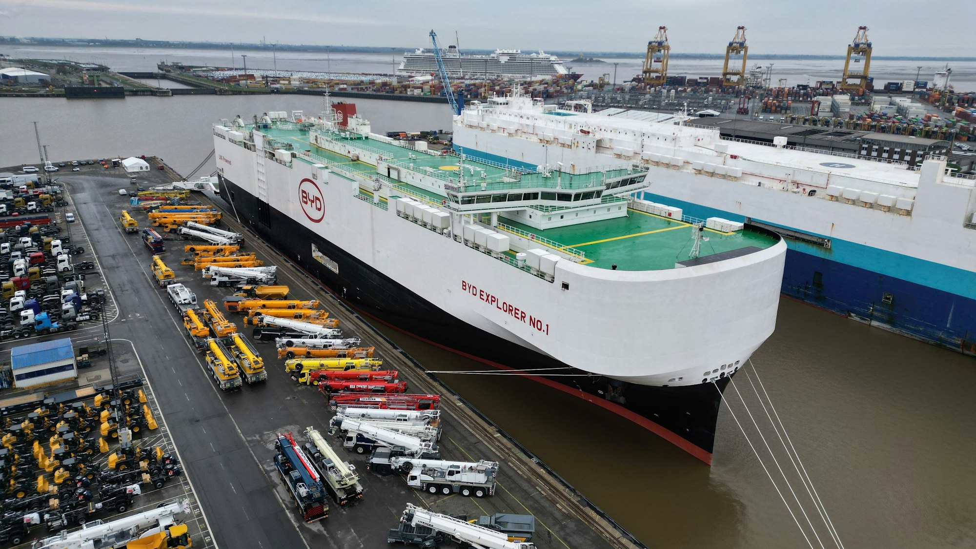 Der Autofrachter 'BYD Explorer No.1' liegt mit 3000 Neuwagen an Bord in Bremerhaven an. Chinesischen Autobauer nehmen verstärkt den europäischen Markt ins Visier.