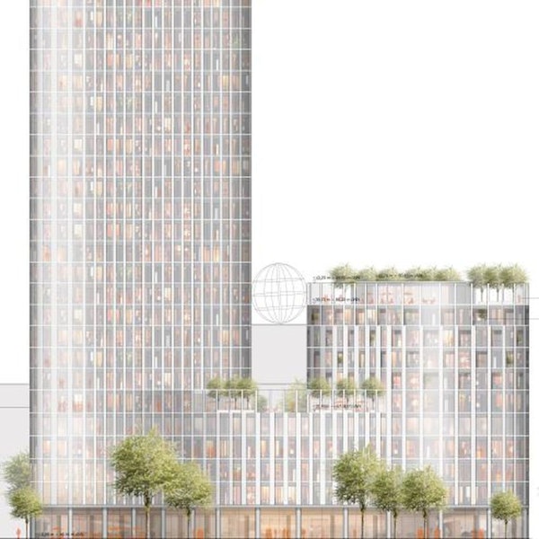 Grafik-Ansicht der JSWD-Architekten zum geplanten Neubau der DEVK-Zentrale an der Zoobrücke