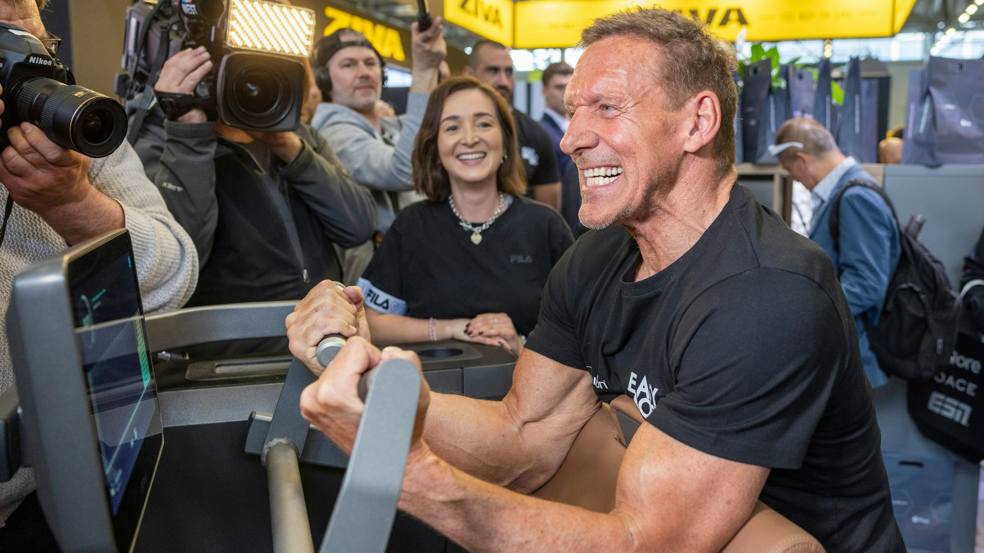Der Schauspieler Ralf Moeller kann sich noch recht gut daran erinnern, was ihm einst prophezeit wurde — der Verfall. „Bei mir selbst haben die Leute immer gesagt: Warte mal ab, mit 55 Jahren wird der Bizeps bis zur Kniekehle hängen“, sagt Moeller, eines der markanten Gesichter auf der seit Donnerstag laufenden Fitnessmesse Fibo in Köln. „Und was war?“, fragt der einstige Bodybuilder. Die Antwort ist an seinen Oberarmen zu sehen. „Mit 55 war der Bizeps noch da und auch mit 65“, sagt er, der bei der Messe immer mal wieder Werbetermine für Aussteller wahrnimmt, in diesem Jahr als „Fitness-Ikone“. „Ich trainiere einen 30-Jährigen in Grund und Boden, was Ausdauer und Wiederholungszahlen angeht“, gibt er sich selbstbewusst.