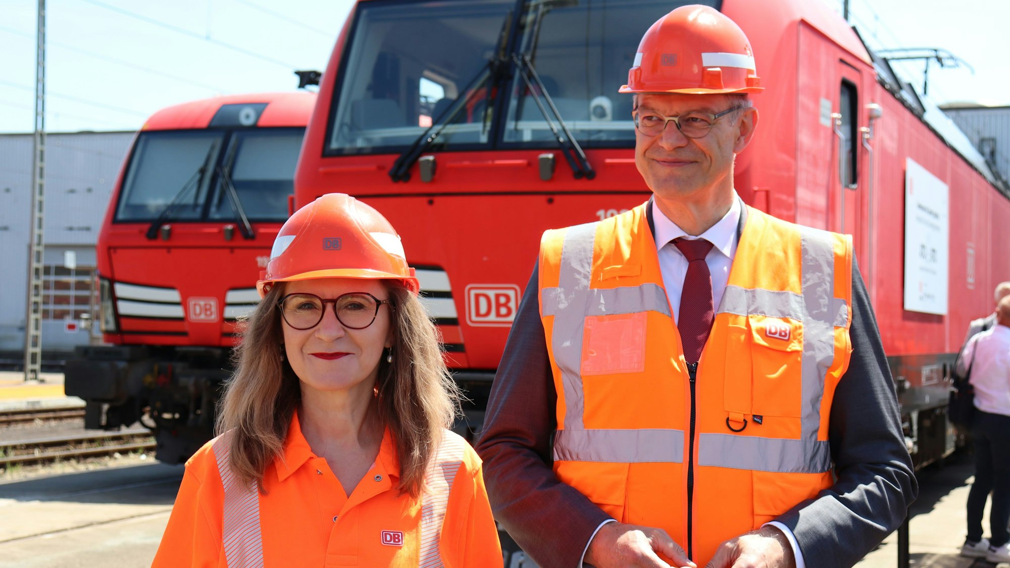 Wenn es um die Zukunft geht, führt auch bei der Bahn am Thema Digitalisierung kein Weg vorbei. In Köln-Gremberghoven wurde deshalb eine spezielle Lokomotive für Güterzüge entwickelt, die perspektivisch vollkommen autonom fahren soll. Sigrid Nikutta. Vorstand Güterverkehr der Deutschen Bahn AG, und Bundesverkehrsminister Patrick Schnieder (CDU) präsentierten die Neuentwicklung am Freitag der Öffentlichkeit.