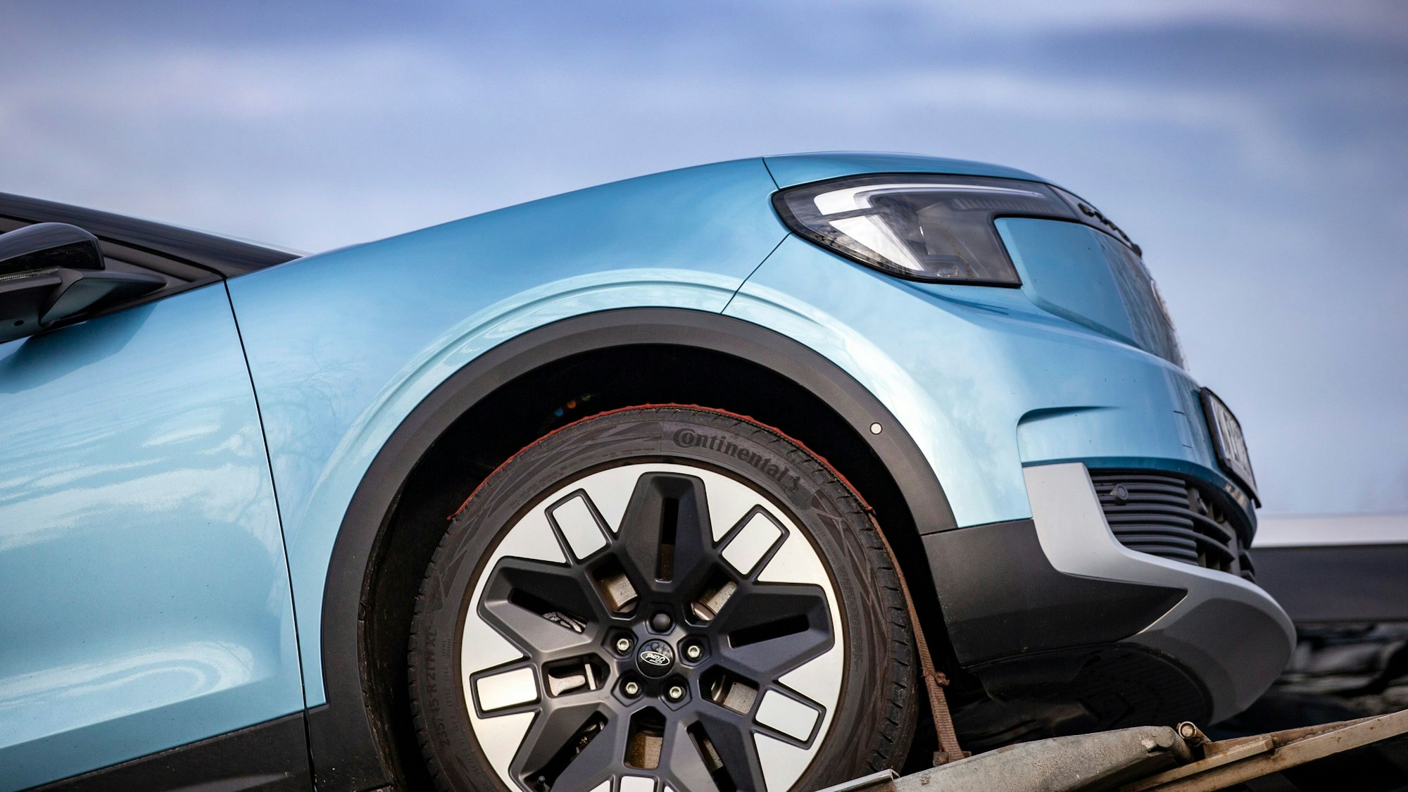 Ein E-Explorer Model steht auf einem Autotransporter. Das Fahrzeug und der E-Capri sollen die Beschäftigung in Köln sichern, verkaufen sich aber schlechter als erwartet.
