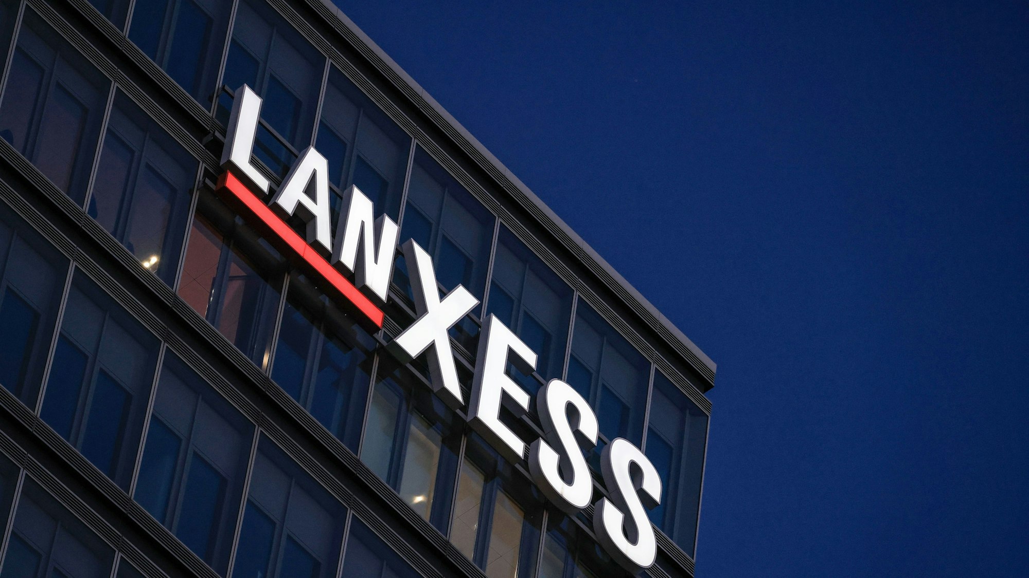 Lanxess-Logo an der Kölner Konzernzentrale.