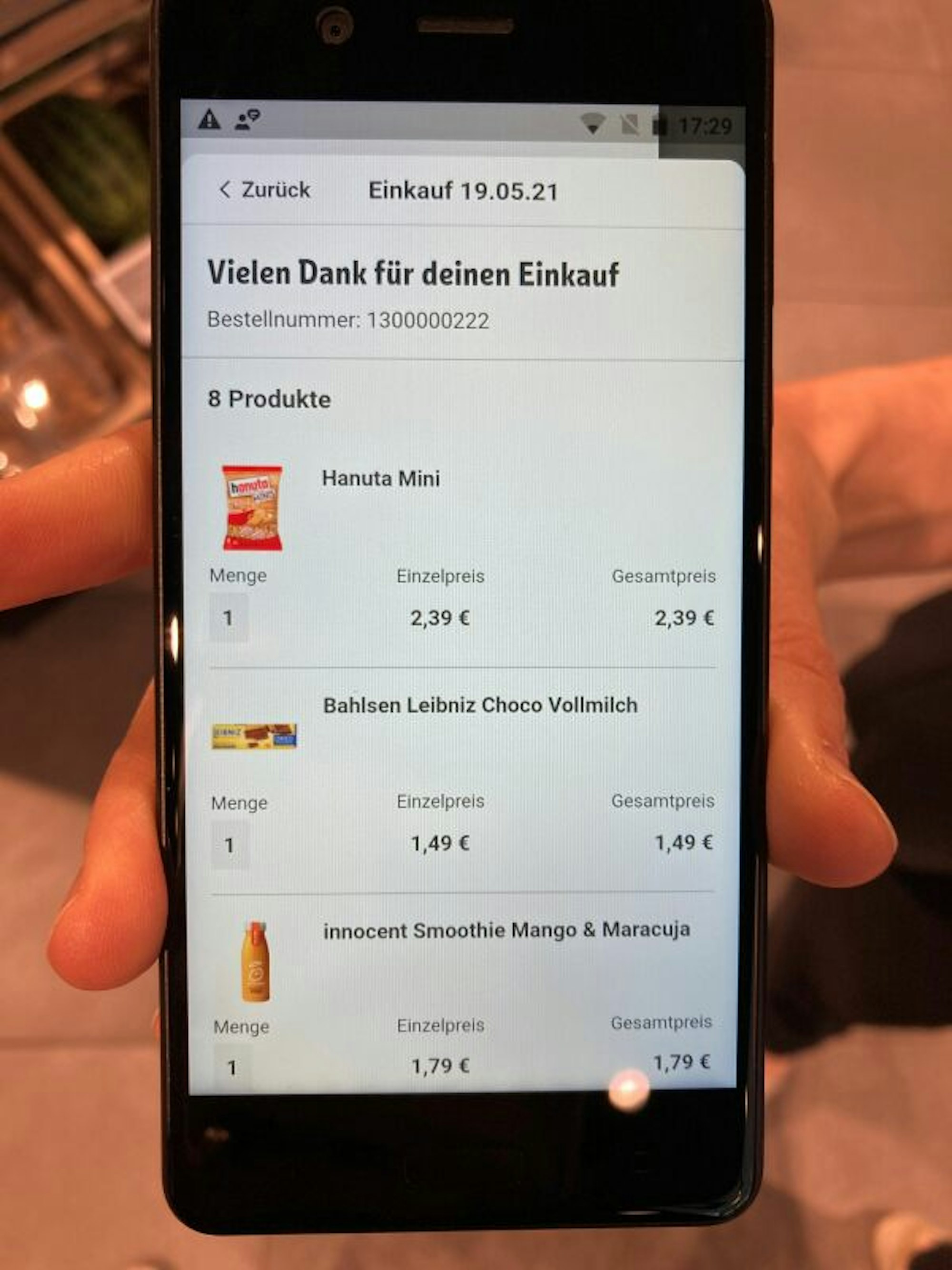 Die Einkäufe sieht der Kunde dann in seiner App.