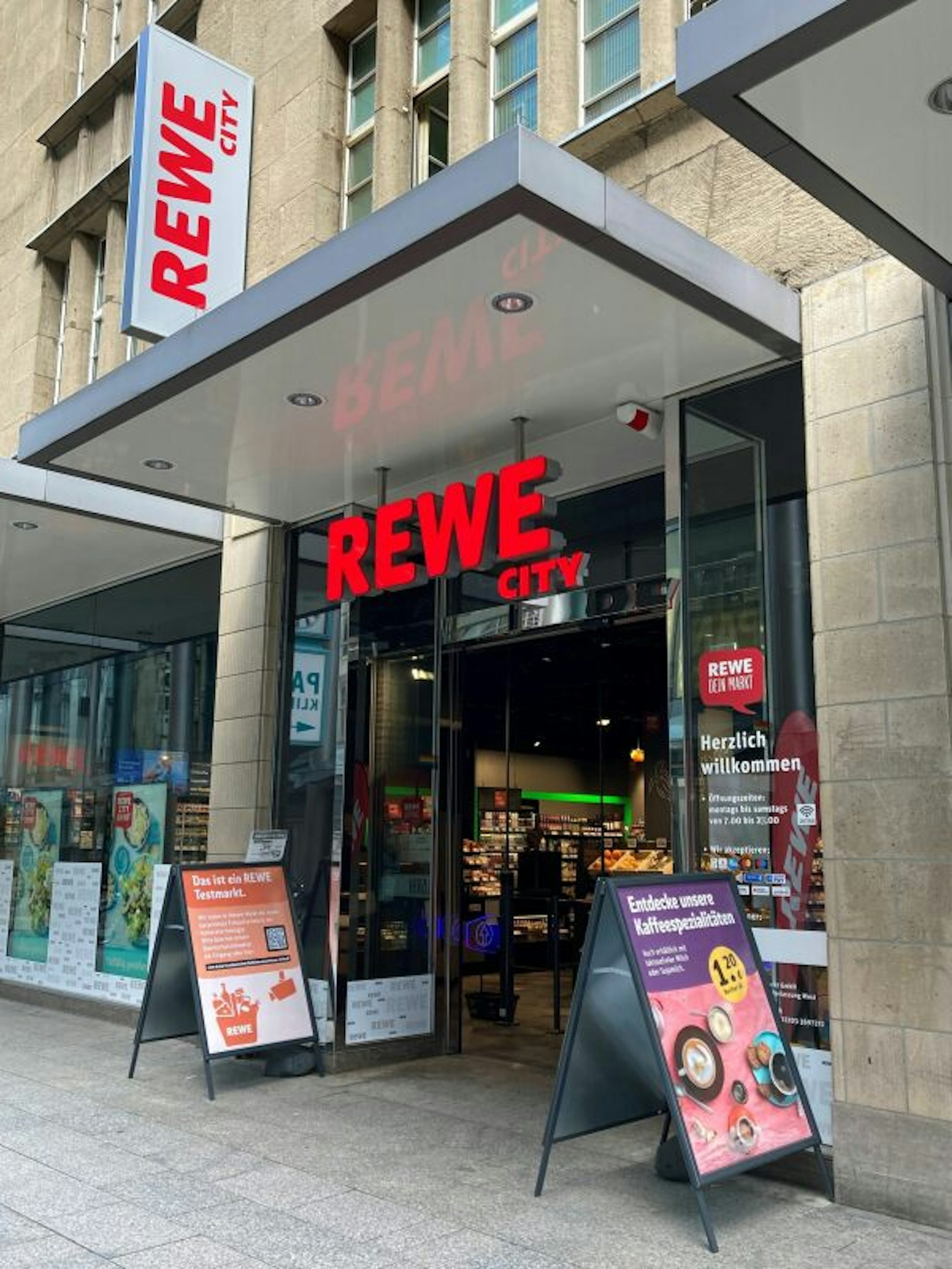Der Rewe-Markt in der Zeppelinstraße sieht von außen ganz gewöhnlich aus.