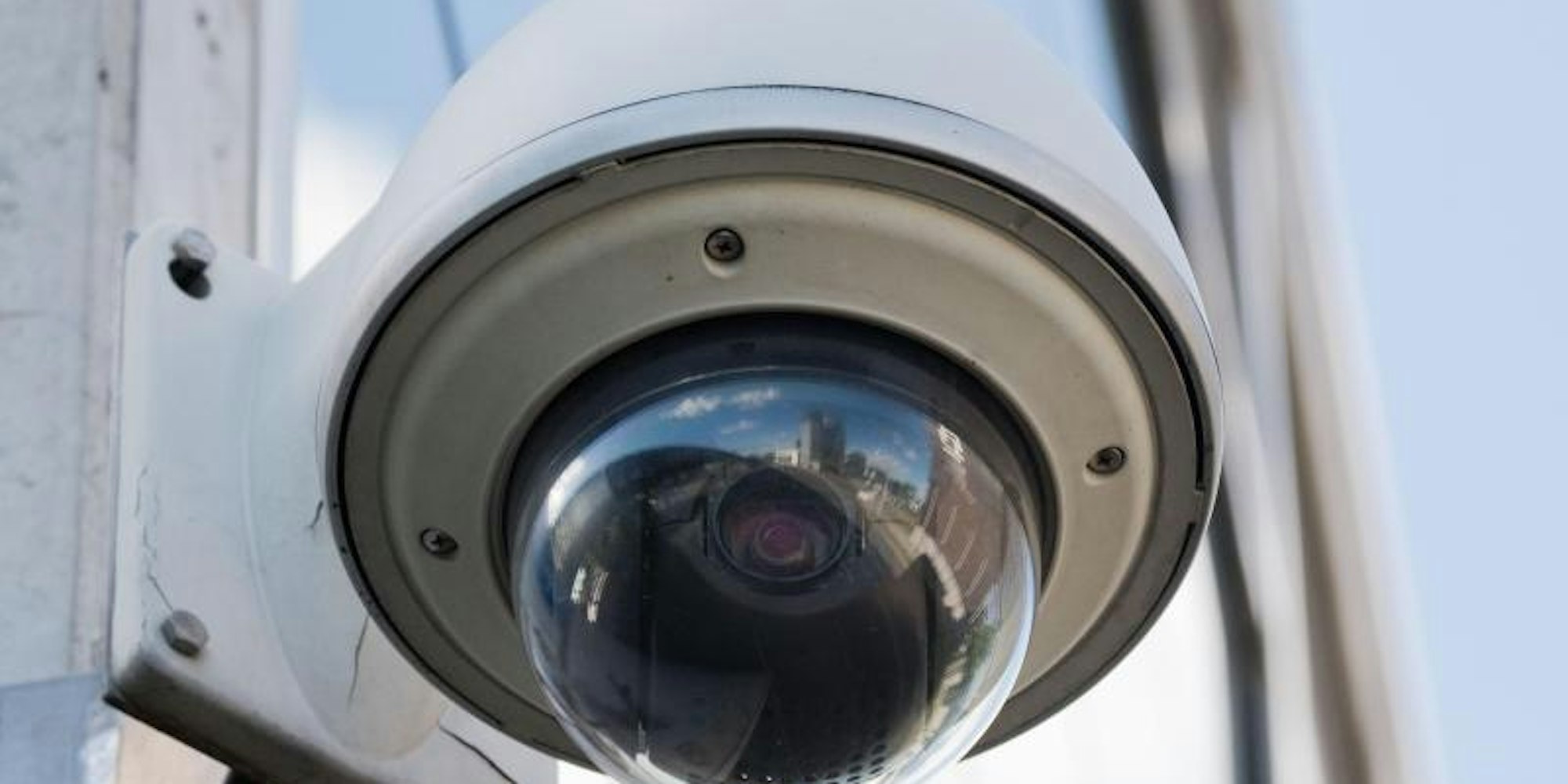 Eine Überwachungskamera filmt einen öffentlichen Bereich.