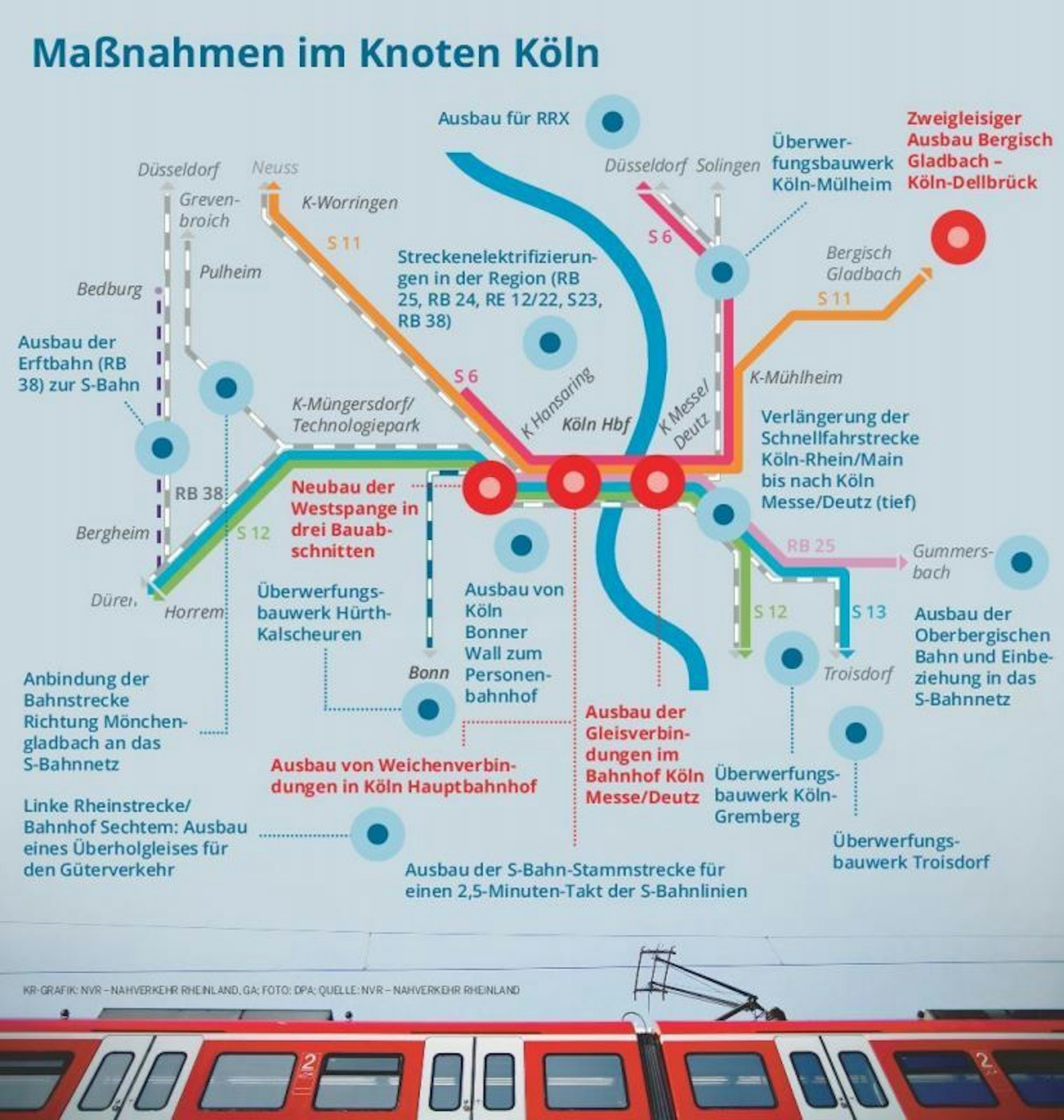 Auch profitiert die Region von einer Elektrifizierung der Eifelstrecke und der Voreifelbahn oder vom Ausbau der S 11 Bergisch Gladbach – Köln-Dellbrück. Und die Oberbergische Bahn soll zur S-Bahn ausgebaut werden. Die wichtigsten Projekte sieht der NVR berücksichtigt .