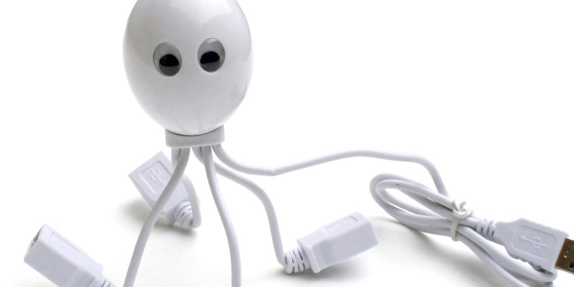Und eigentlich langweilige USB-Hubs, mit dem mehrere Geräte an einen Anschluss passen, gibt es auch als Hingucker – zum Beispiel von Satzuma in Form einer Krake (10 Euro).