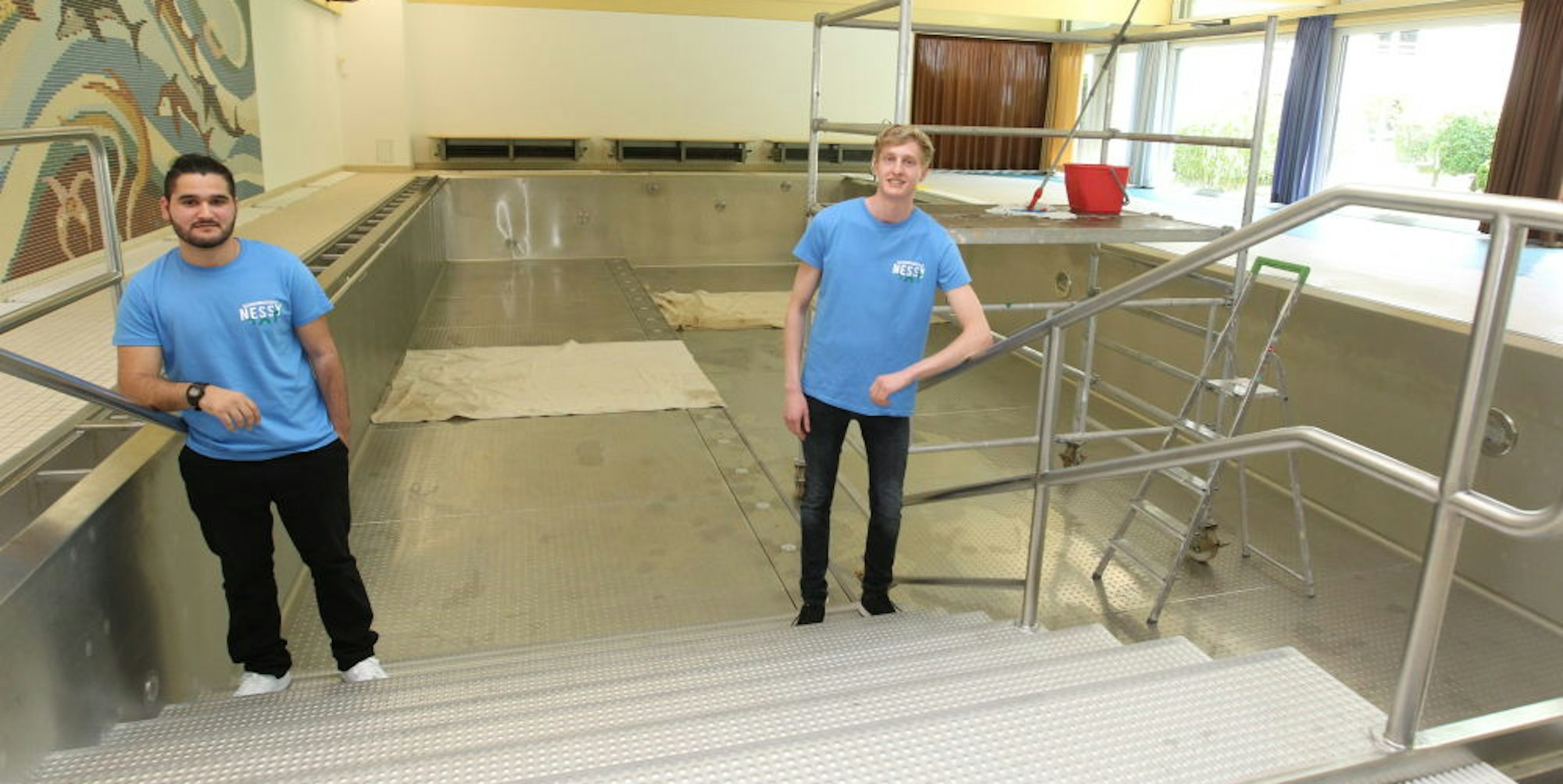 Für die kleinsten Kunden sind Babyschwimmen und Wassergewöhnungskurse, bei denen die Eltern mit ins Nass steigen, sowie Seepferdchen-Kurse im Angebot. „Für Anfänger ist das Becken im Kurhaus optimal“, erklärt Sarikaya. Etwa zwölf mal sechs Meter misst das Bassin. Der Nessy-Kurs für Fortgeschrittene soll in der Sportschule stattfinden. „Wir geben anfangs selbst die Kurse“, so Kaymer, dann wolle man Schwimmlehrer engagieren wie den Triathlon-Sportler Theo John für die Leistungskurse.